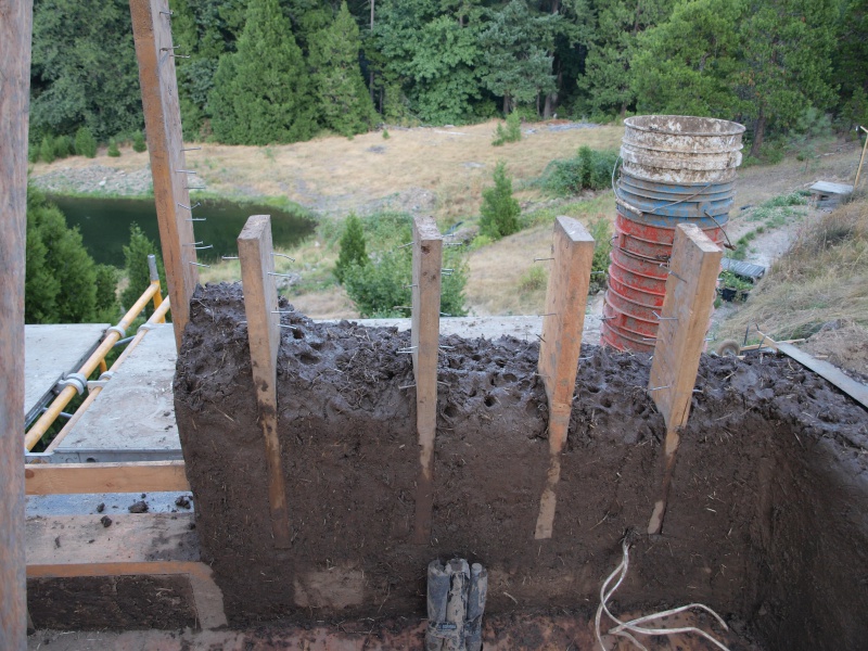 Detalle de un muerto de madera en un muro de cob