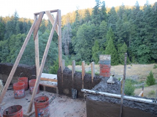 Muro de cob con premarcos de una ventana y muertos de madera para poder fijar mobiliario a los muros