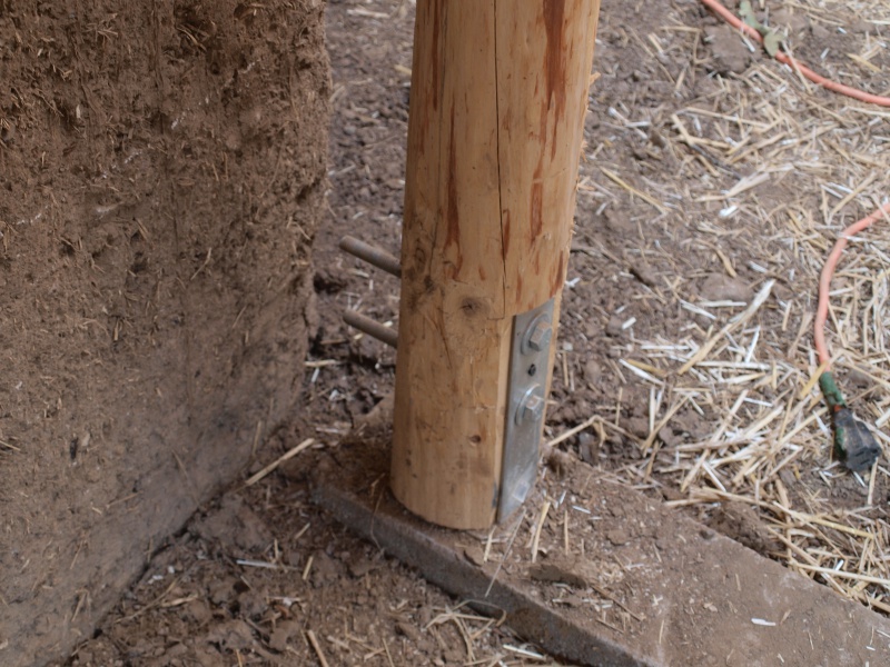Anclaje de un pilar de madera en la cimentación de hormigón pasa separarlo la humedad del suelo