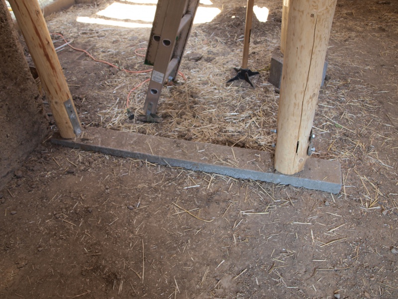 Anclaje de unos pilares de madera a la cimentación de hormigón, alejándolos de la humedad