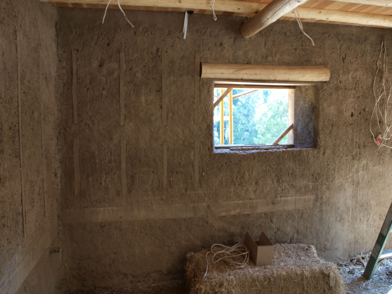 Dintel de madera en una ventana de mucho grosor para soportar las acciones del muro que tiene encima